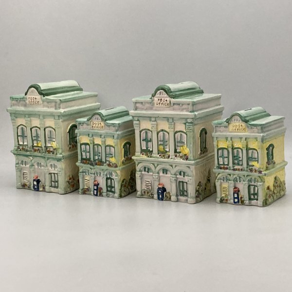 未使用 Post Office 貯金箱 大小各2個 まとめて4個 約 9.7×9.7×15.0㎝ 約 7.2×7.2×11.3㎝ 陶器製 郵便局 ②