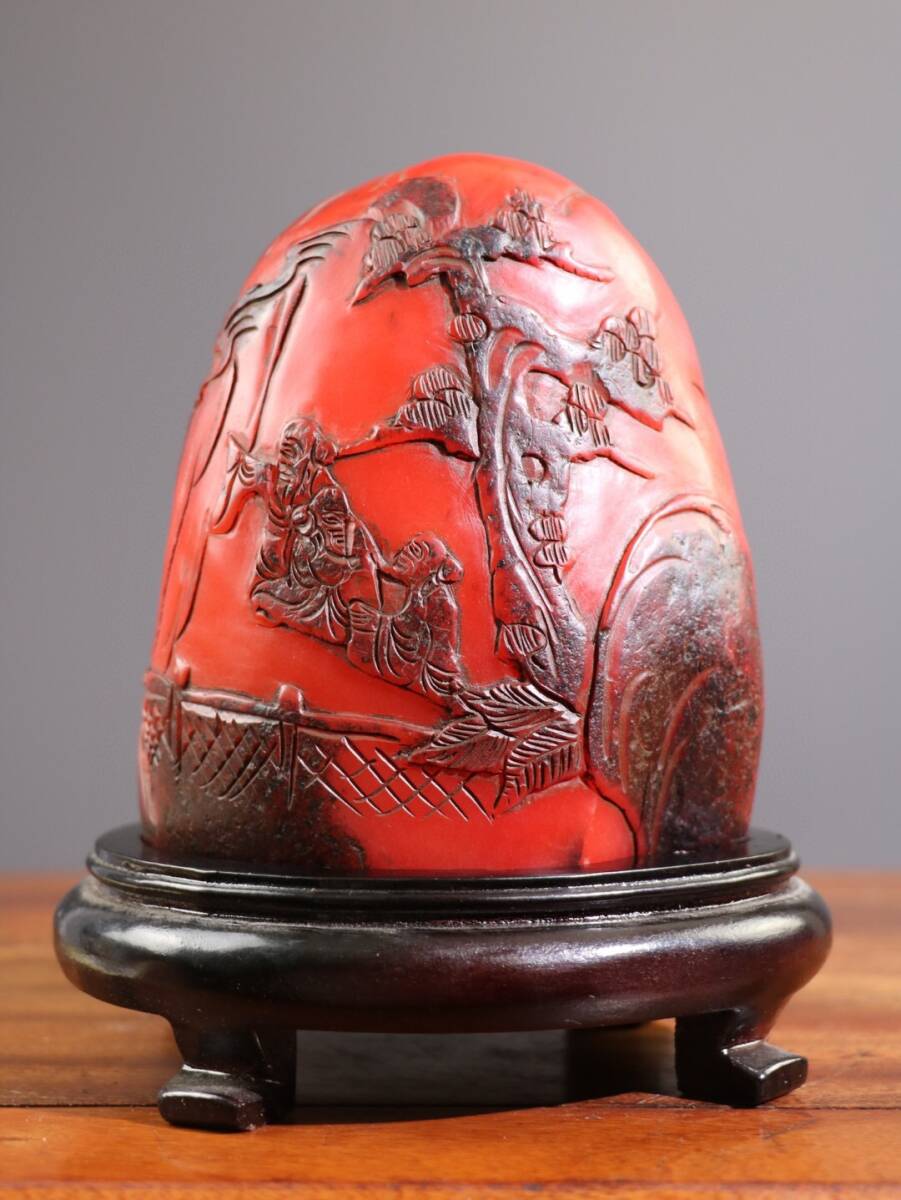 - 【超珍館蔵】寿山石 烏鴉皮 紅田黄石 細密彫 高山雅居紋印章 印章 印鑒 文房具 書道品 古賞物 古董品 古美術品 時代物 旧家蔵出 稀少珍蔵品