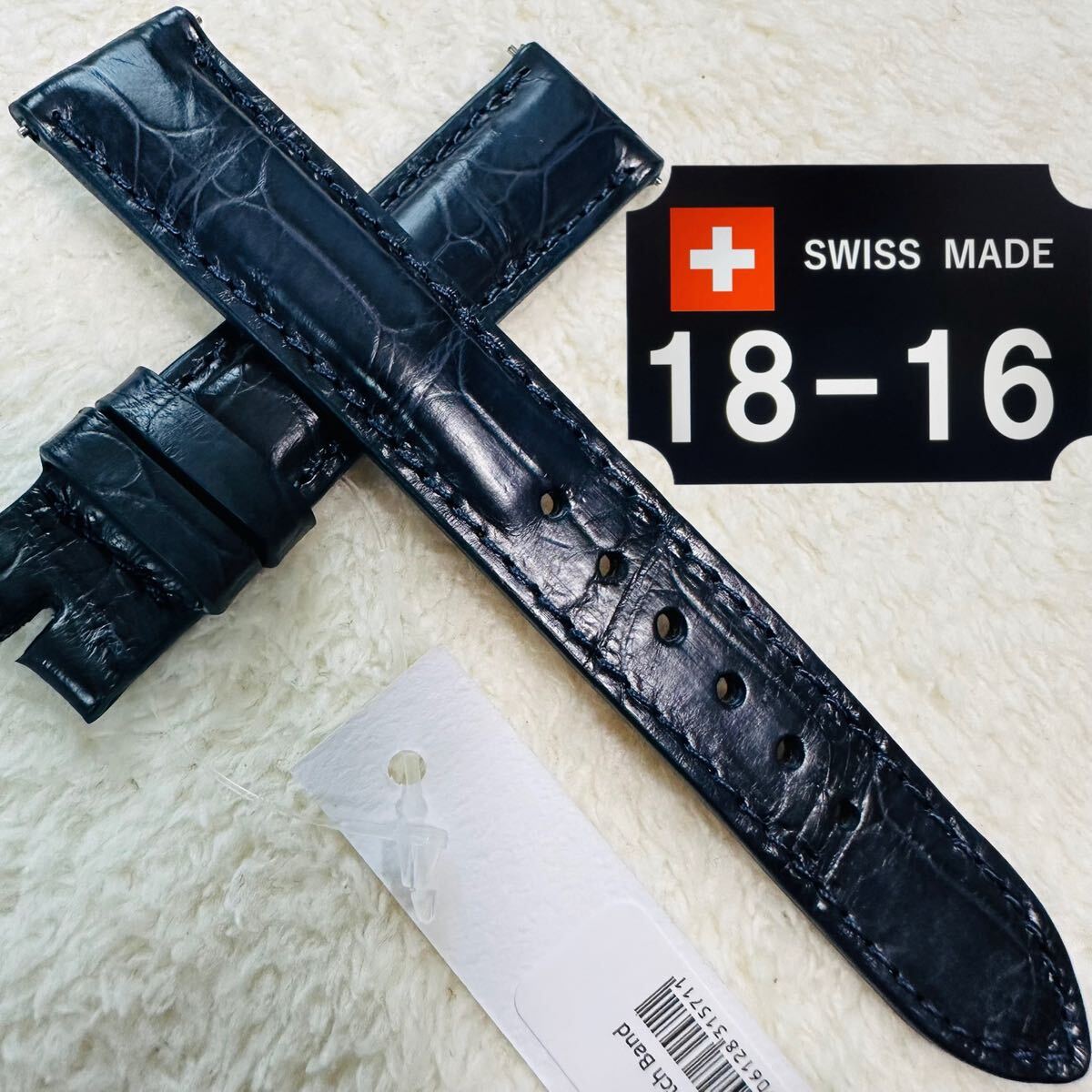 - 1028#18mm-16mmミッドナイトブルー★本物クロコダイルベルト★スイス製