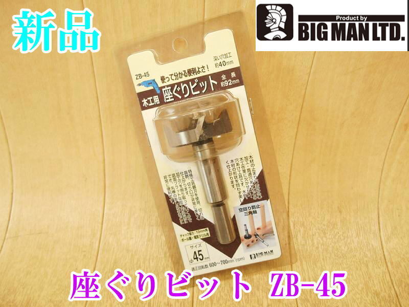 > 〇【新品・未開封】 BIG MAN 座ぐりビット ZB-45 ④ 木工用 深い穴 加工 約40mm 直径45mm ボール盤・電気ドリル用 ビット 貫通穴 刃 替刃