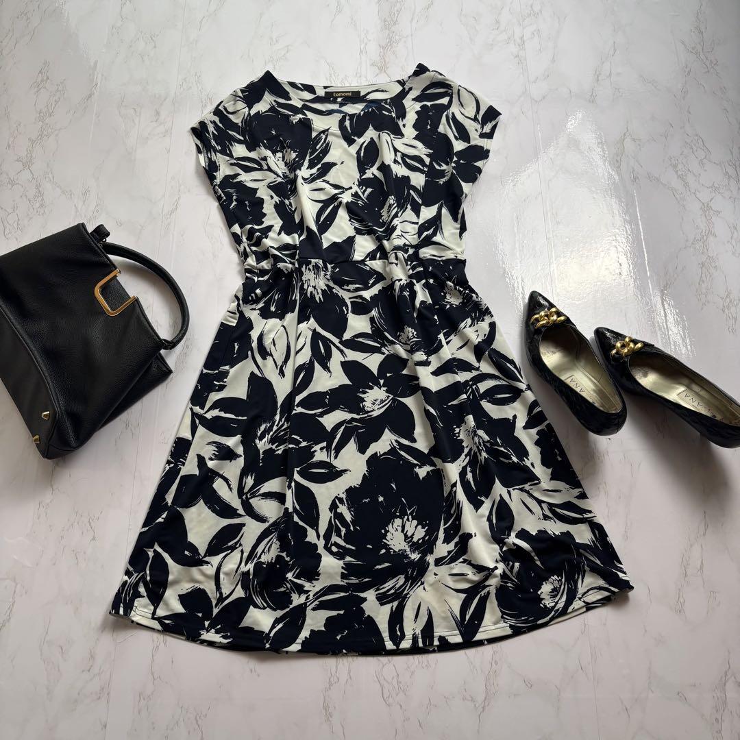- 美品 tomomi 花柄ワンピース M〜L 半袖 フレア