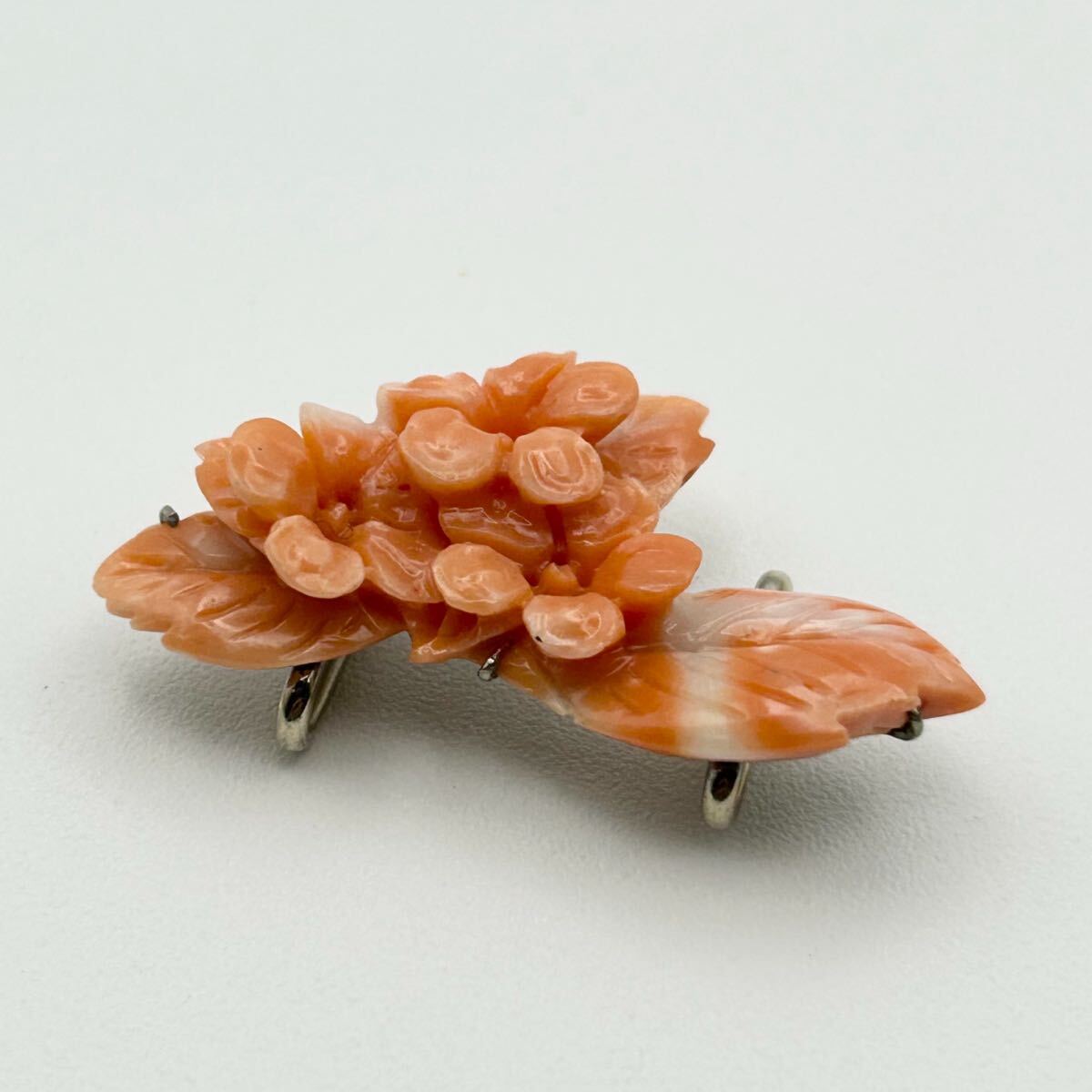 - NO.184 赤珊瑚 帯留め サンゴ 和装小物 コーラル アクセサリー 着物 彫刻 花 フラワー 本珊瑚 ヴィンテージ うぶ品