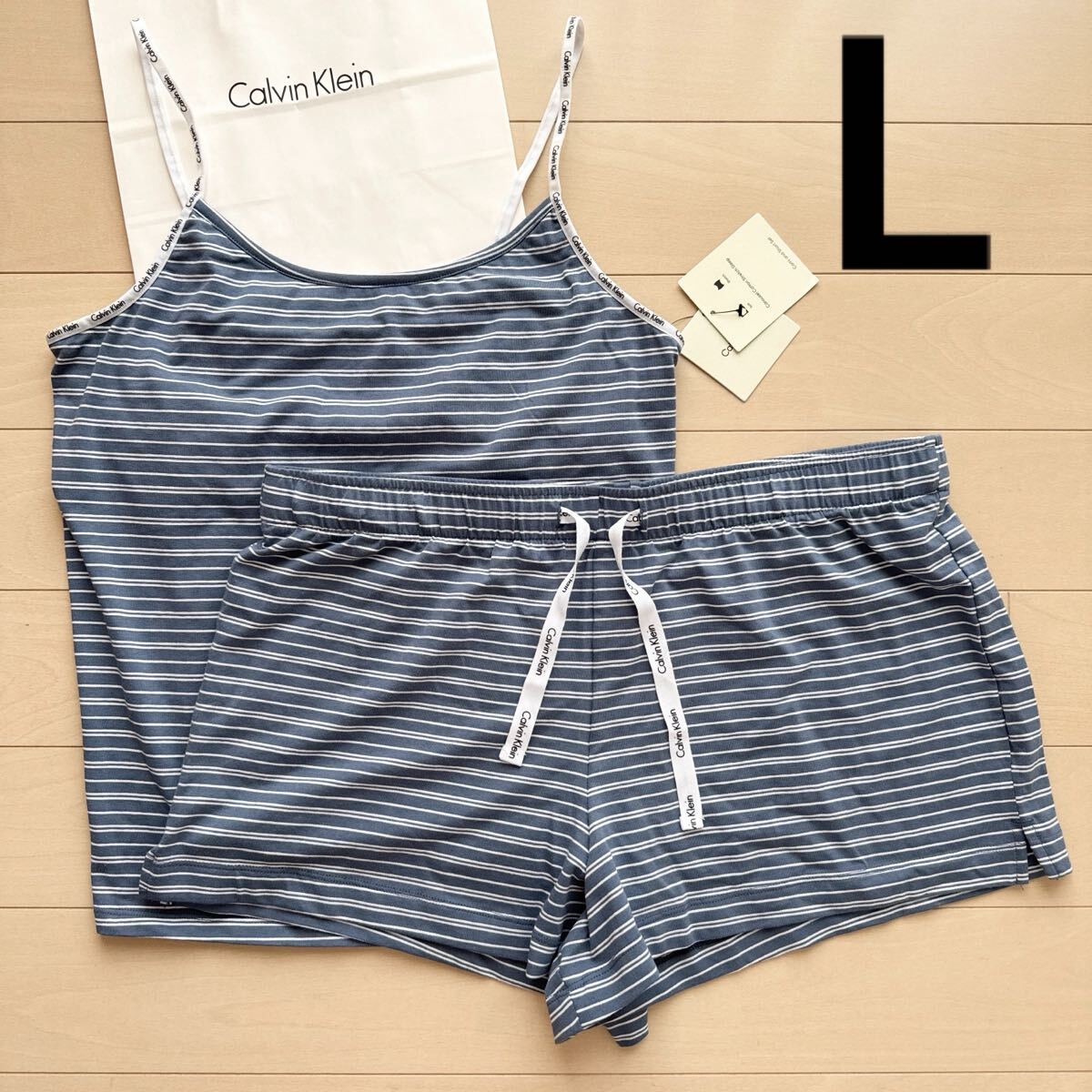 - Calvin Klein カルバンクライン スリープウェア パジャマ L XL キャミソール パンツ レディース セットアップ ボーダー 上下 セット 紺