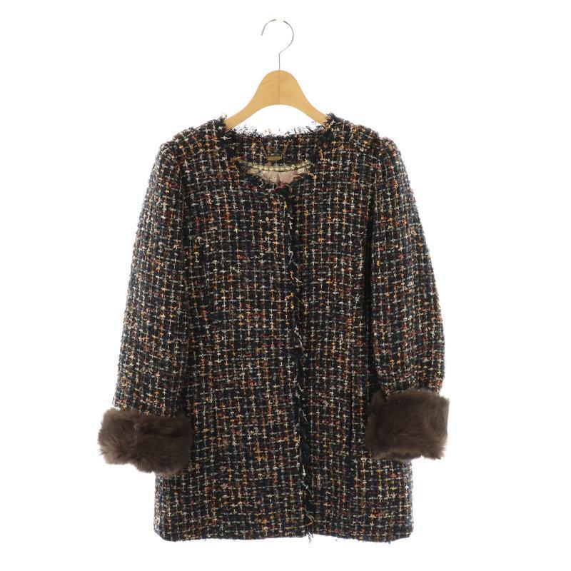 > ランゲージ Language ノーカラーコート ツイード 紺 マルチカラー /MI ■OS ■FR レディース
