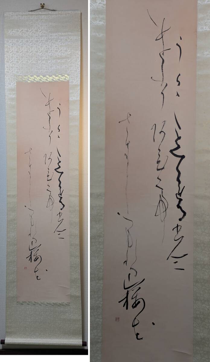 - 【真作】掛軸 かな書 書作品 柔らかな筆で奏でる和の詩情 T13