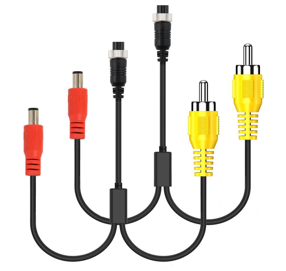 - 4ピン航空メス⇔RCA/DC変換 AV延長ケーブル 映像電源コード 線 2本売