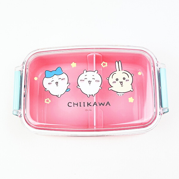 ピンク×ブルーの色合いが可愛いちいかわのランチボックスです。仕切りがついていて、透明なフタなのでキャラ弁やデコレーションしたお弁当にぴったり☆楽しそうにダンスしているちいかわたちが可愛い♪ちいかわたちと楽しいランチはいかがですか?食洗機・電子レンジ(フタを外して)使用可◎【容量:500ml】