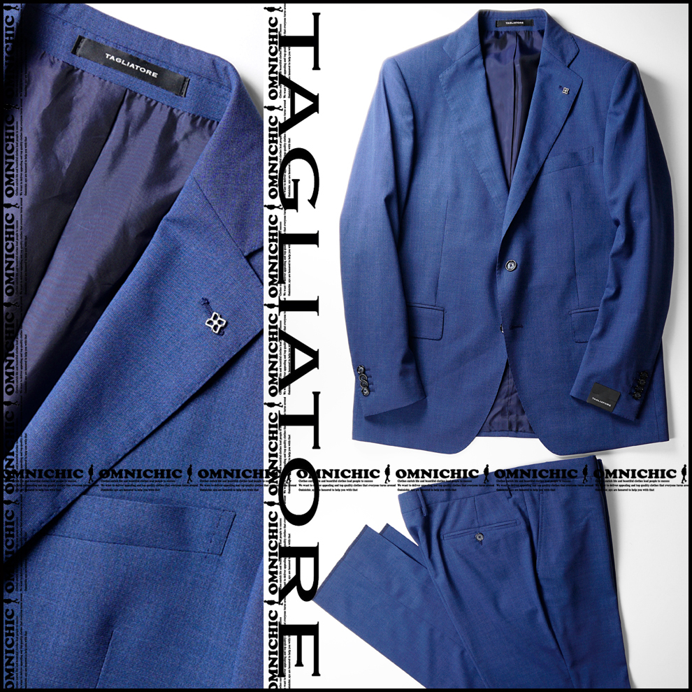 > コレこそ高級感!Super110’s■新品/春夏【TAGLIATORE】タリアトーレブルーソリッドストレッチファインウール2Bスーツ48/ジャケットパンツ