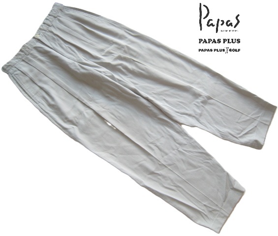 - 極上日本製!!パパス Papas*ロゴタグ付き ドローコード入り 2プリーツ ゆったりコットンレーヨンピケパンツ M グレー