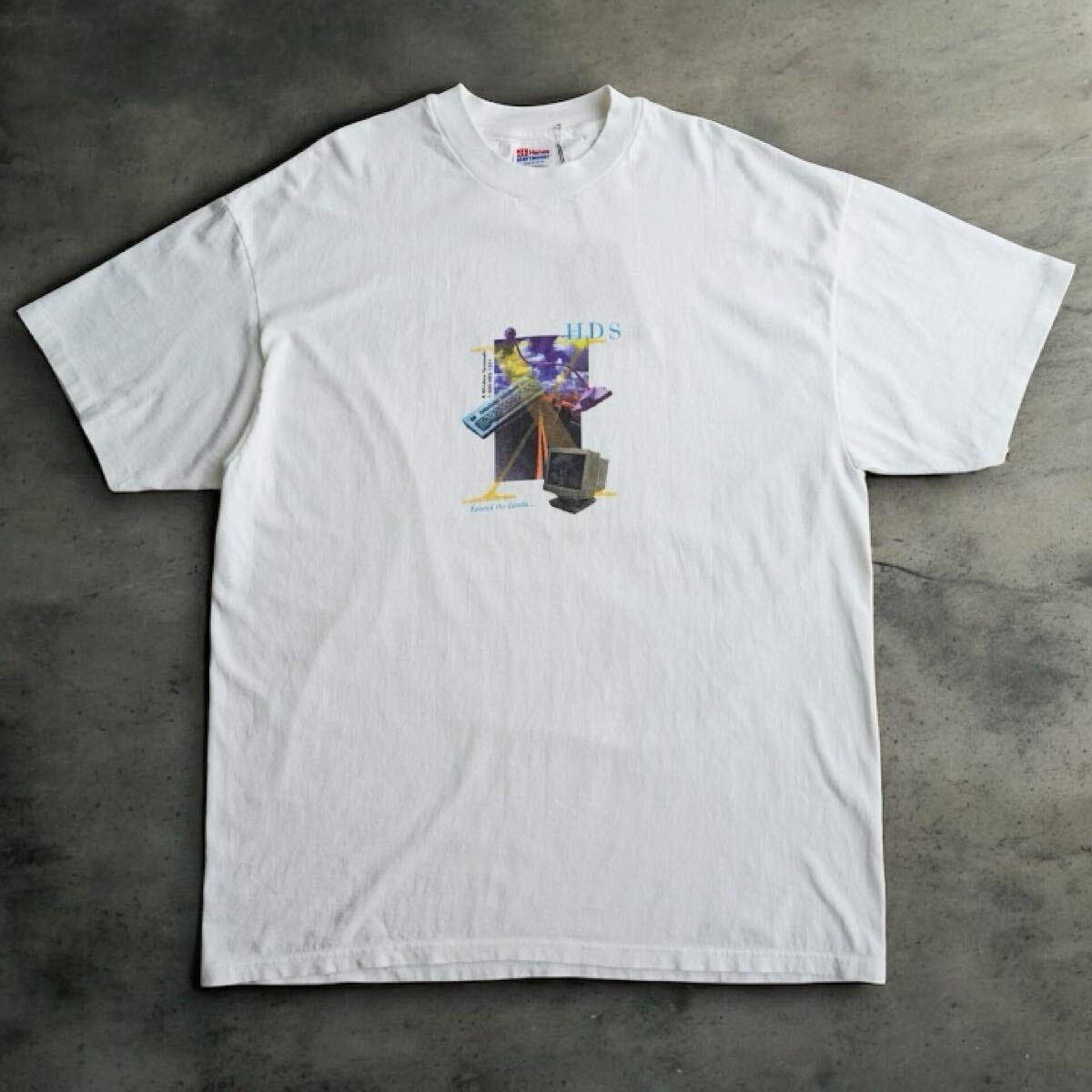 > 90s USA製コットン使用 メキシコ製 Hanes IT企業 Tシャツ XL 白 コンピューター 韓国買付 Omni Heavy 古着 ヘインズ ヴィンテージ ホワイト