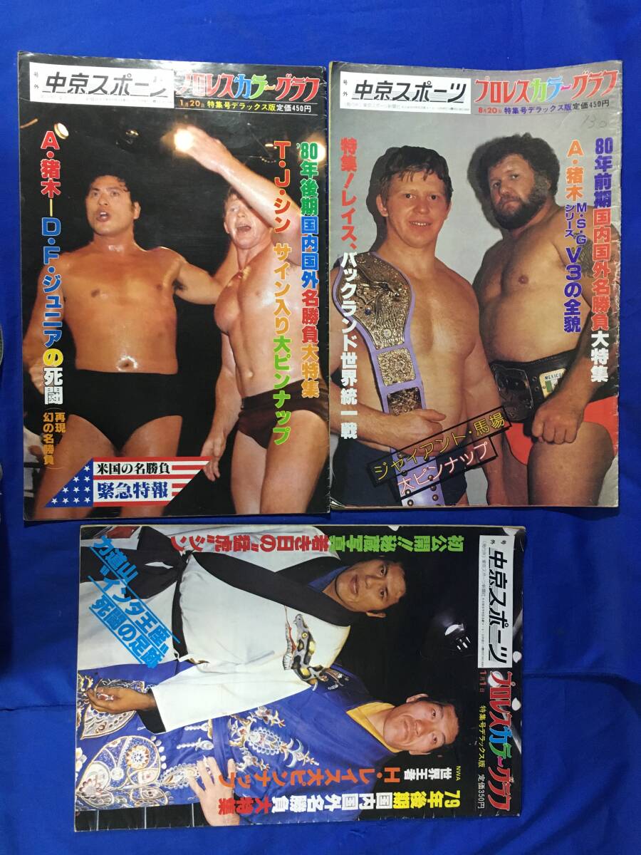 > AG16イ△号外中京スポーツ【グラフ誌:プロレスカラーグラフ】3冊セット Vol.4-6 昭和55/56(1980-81)/馬場/猪木/力道山