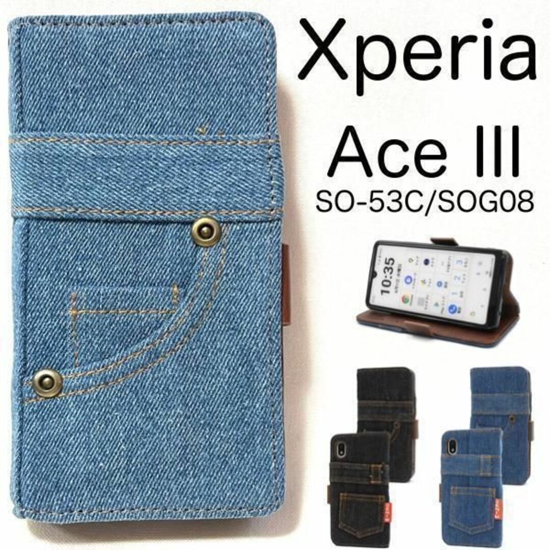 - Xperia Ace III SO-53C/SOG08 ジーンズ柄手帳型 ケース/エクスペリア スマホケース