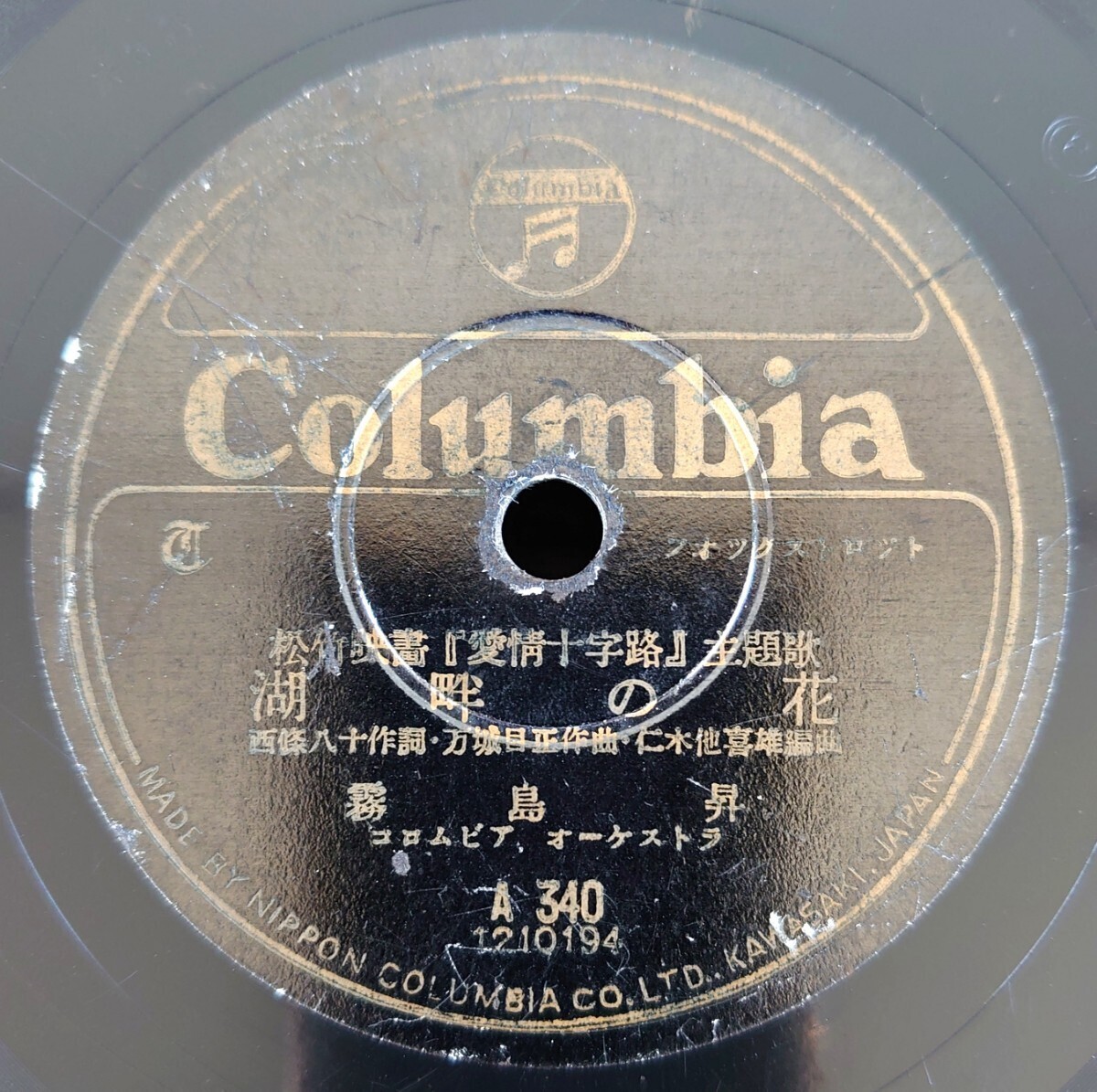- 【SP盤レコード/薄ヒビ】Columbia A340/松竹映画「愛情十字路」主題歌/霧島昇/乙女の夢 栗本尊子たか