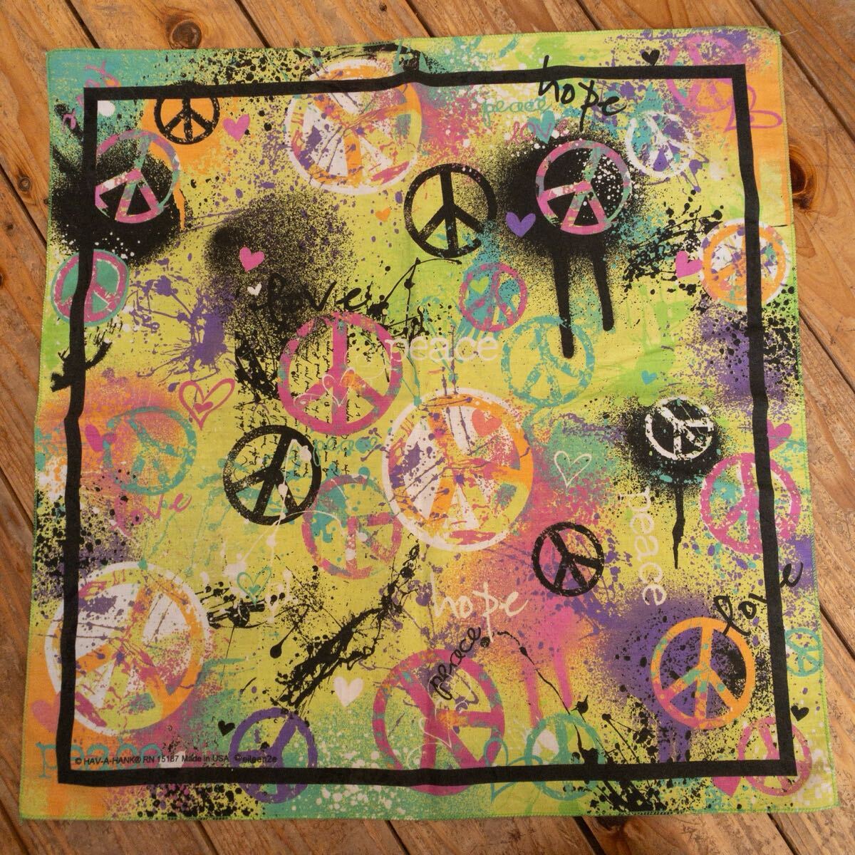 - 送料無料 Vintage バンダナ ピースマーク ハンカチ アメリカ仕入れ PEACE MARK ペンキ カラフル ハバハンク 雑貨 ヴィンテージ A1708