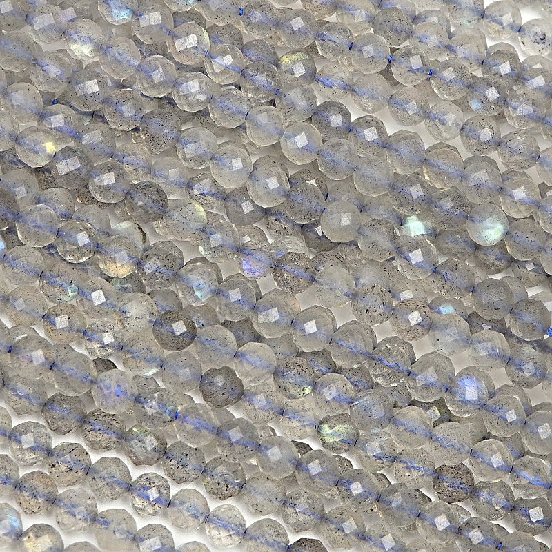 - ラブラドライト 面カット 丸玉 3mm[プレミアムカット]【1連販売】 / 7-8 LB3MC