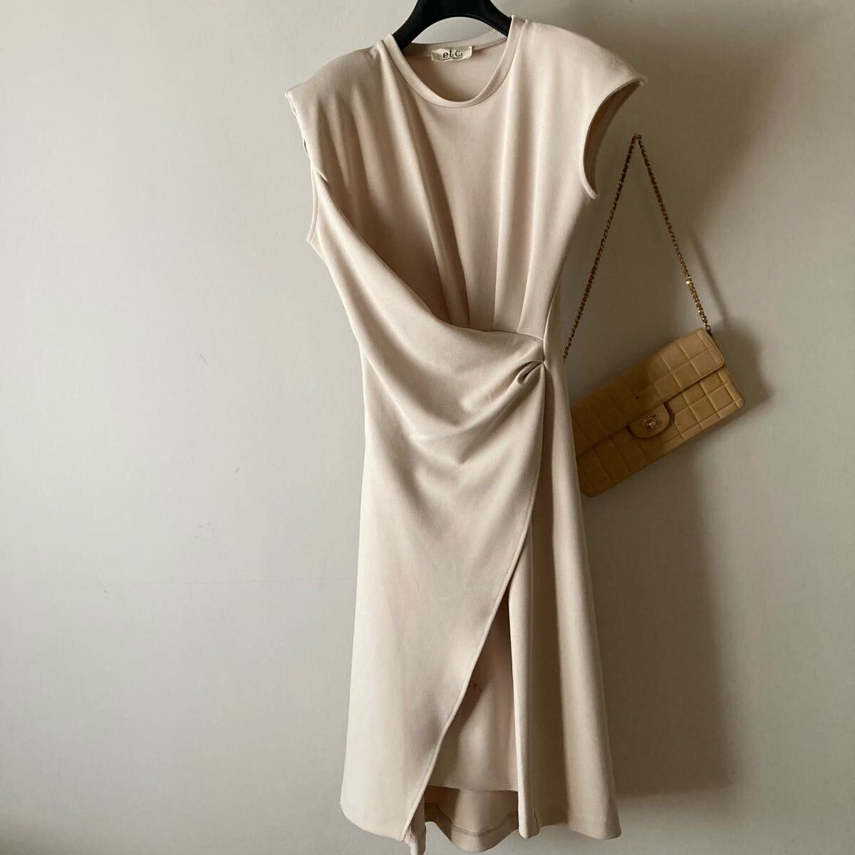 - イタリア製etici*ストレッチジョーゼット ジャージードレスワンピース*ピンクアイボリー