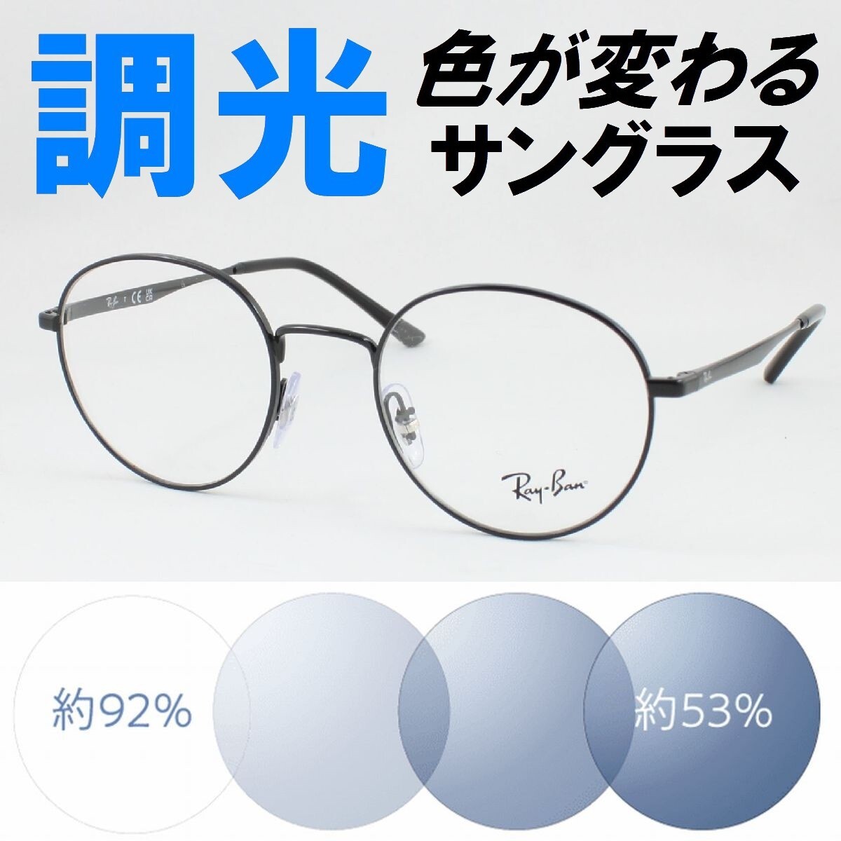 > Ray-Ban レイバン RX3681V-2509 50サイズ ライトブルー調光サングラス 度なし 伊達メガネ UVカット ラウンド 丸メガネ ラウンドメタル系