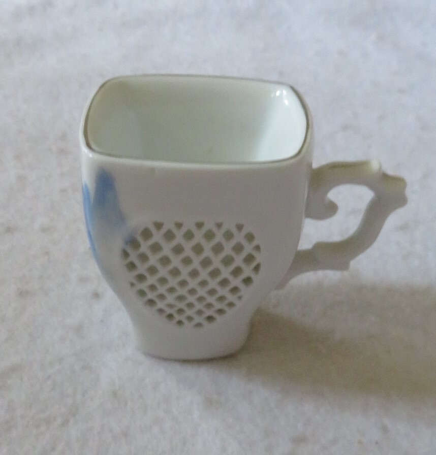 - 中国 江蘇利民製 陶器ティーカップ 茶器 山水画 透かし彫り 希少 現品限り