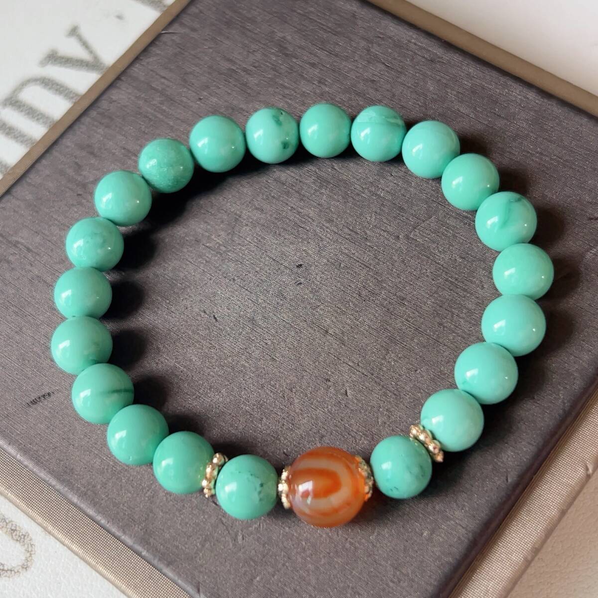 > ◇マグネサイト+瑪瑙1粒(天眼模様入り)◇ブレスレット◇パワーストーン◇天然石◇巾着袋付き◇プレゼントにも038B754