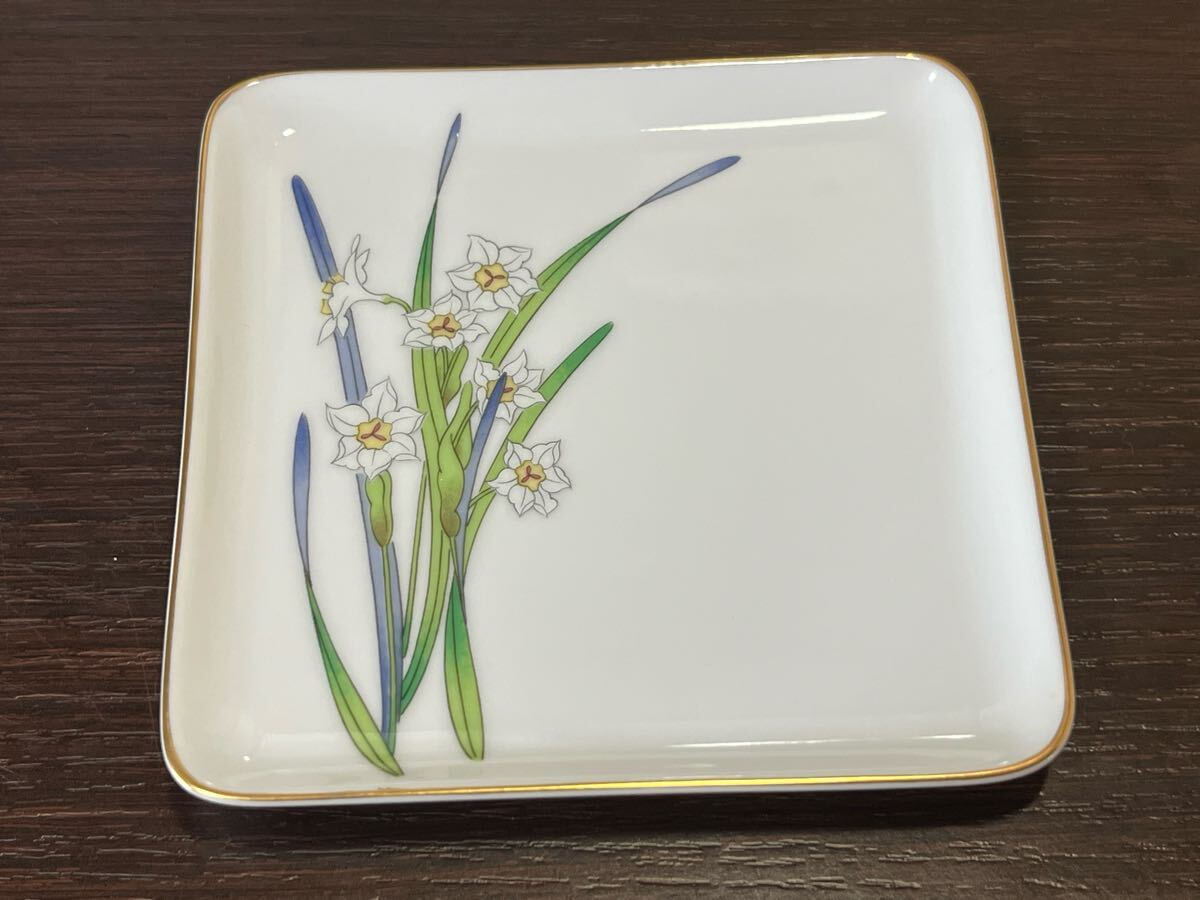 - 【未使用】【美品】香蘭社 有田焼 茶席の花 小皿 和食器 角皿 12cm