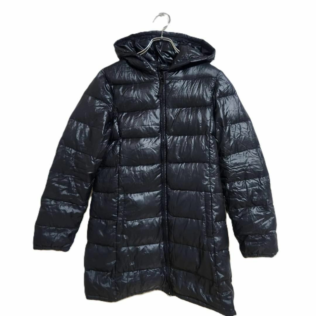 - 美品 ダウンジャケット M 黒 フード付き ロング丈 軽量 防寒 おでかけ 秋冬