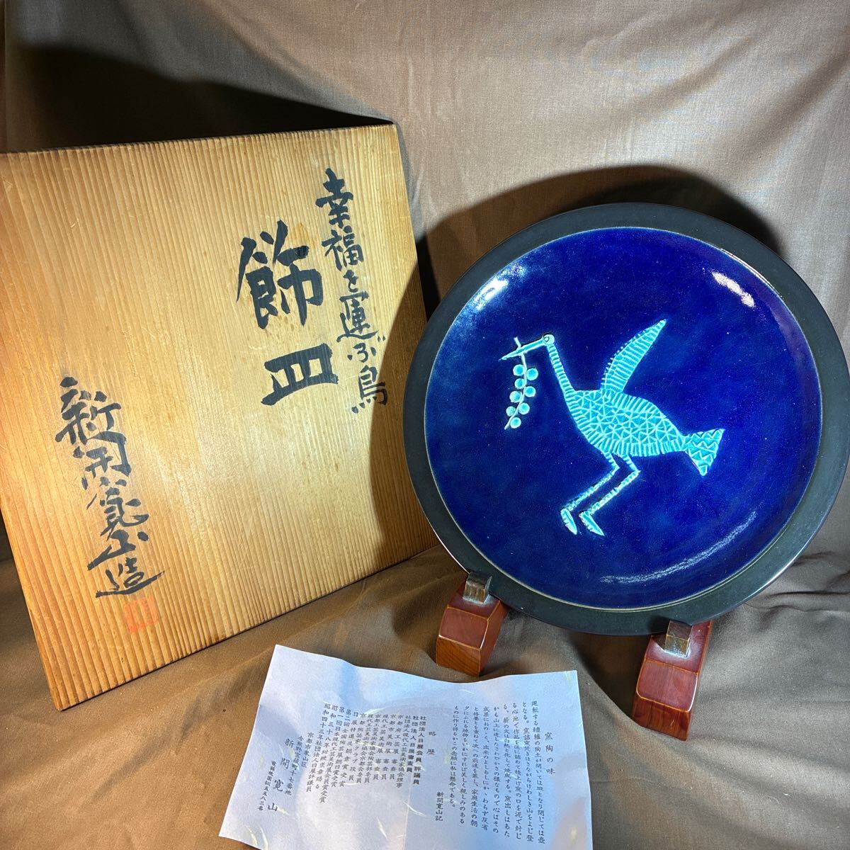 > 父:清風与平 新開寛山造 幸福を運ぶ鳥 飾皿 飾り皿 陽刻 共箱 陶暦 父:清風与平