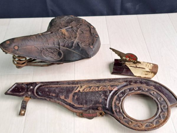 - ビンテージ 自転車 ハツタカ パーツ・サドル・チェーンカバー・ロゴマーク・まとめて