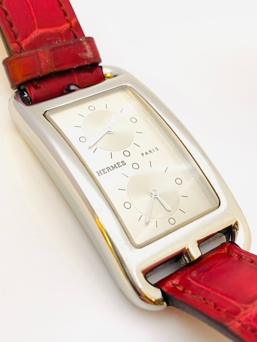 - 美品 HERMES エルメス CC3-510 ケープコッドドゥゾーン SS×レザー 2か国タイム レディース シルバー文字盤 腕時計