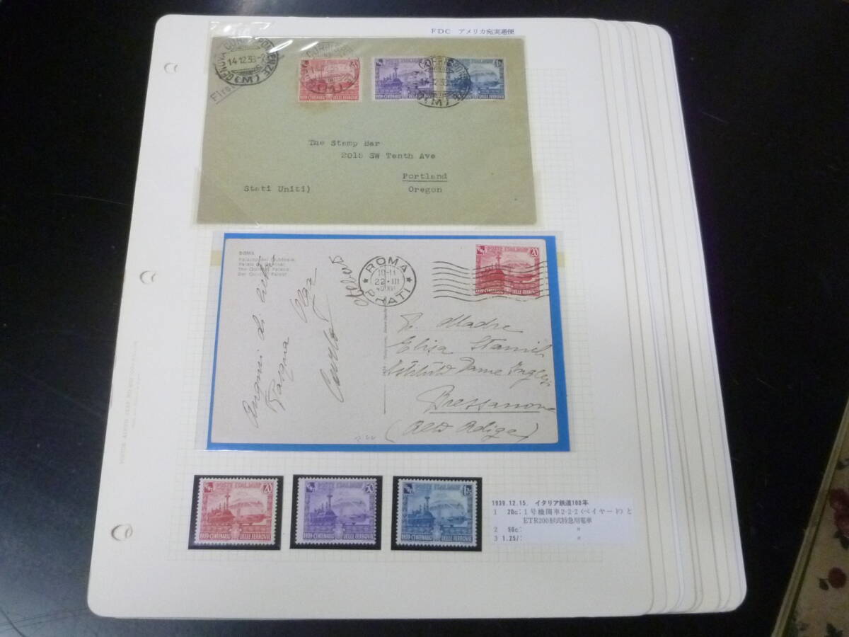 - 鉄道№36-3 イタリア切手 1939-2010年 各種 鉄道関連 単片+FDC+実逓カバー等 計10リーフ 未使用NH主体・VF ※説明欄必読