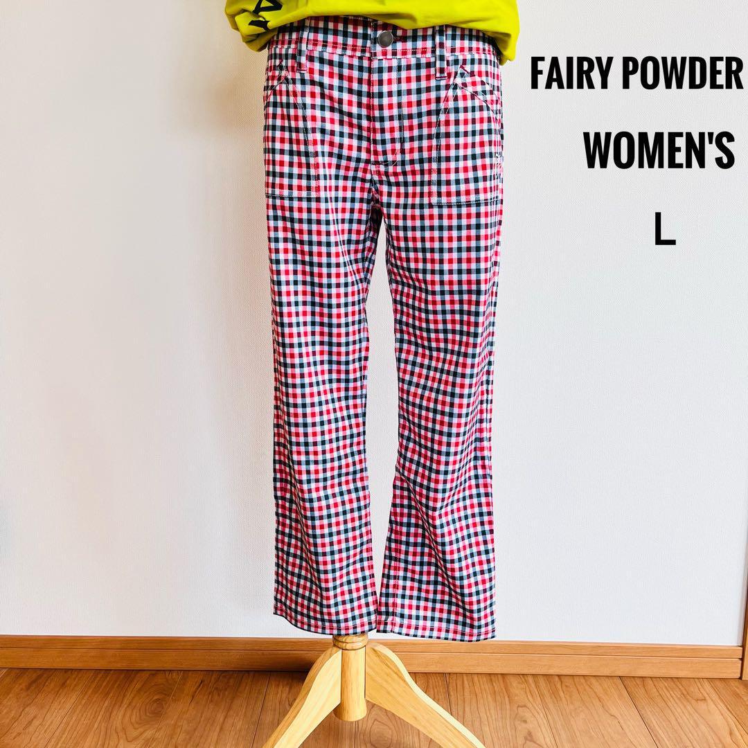 > FAIRY POWDER フェアリーパウダー レディース クロプッドパンツ ゴルフパンツ チェック 刺繍ロゴ L
