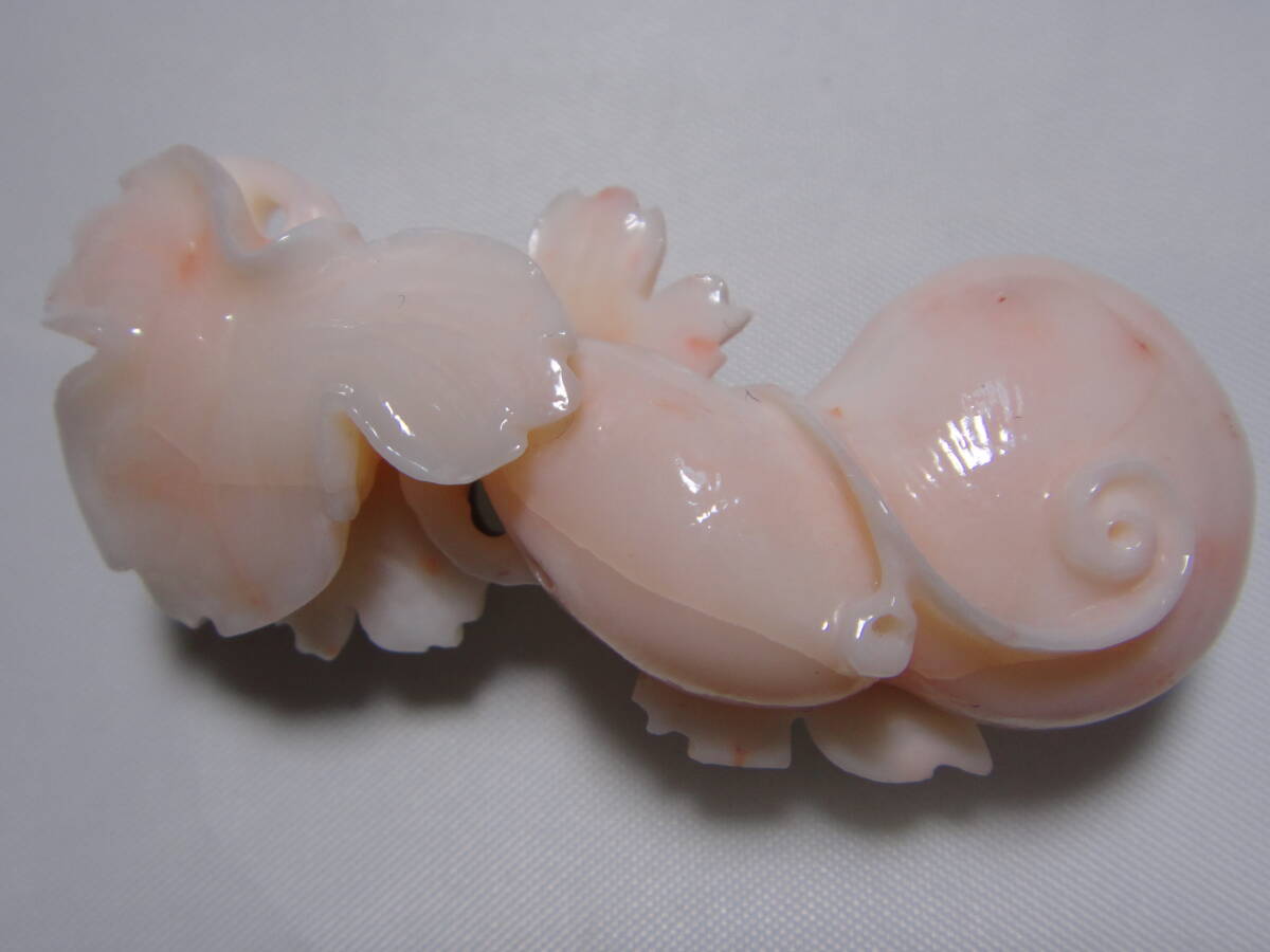 - 珊瑚 サンゴ さんご コーラル 繊細彫刻 ひょうたん 瓢箪 帯留め アンティーク レトロ ヴィンテージ Y742