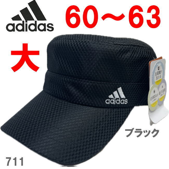 - ブラック アディダス adidas 711 大きめ ワークメッシュ 60-63 キャップ 帽子