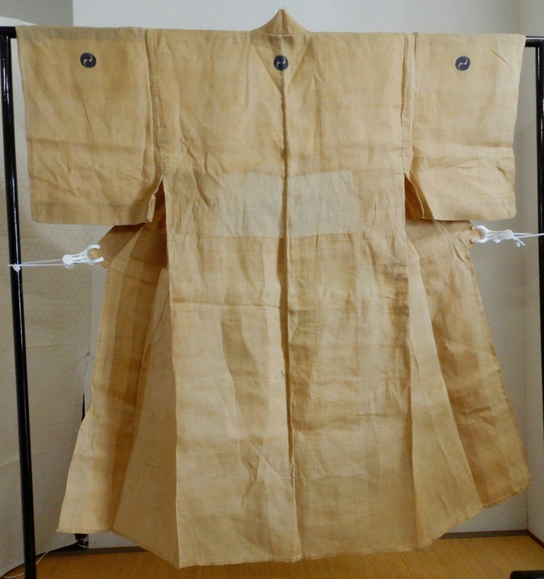 - <銀の斧>麻地・生平紋付男性用着物・大正期前後・五ツ紋・アンティーク着物