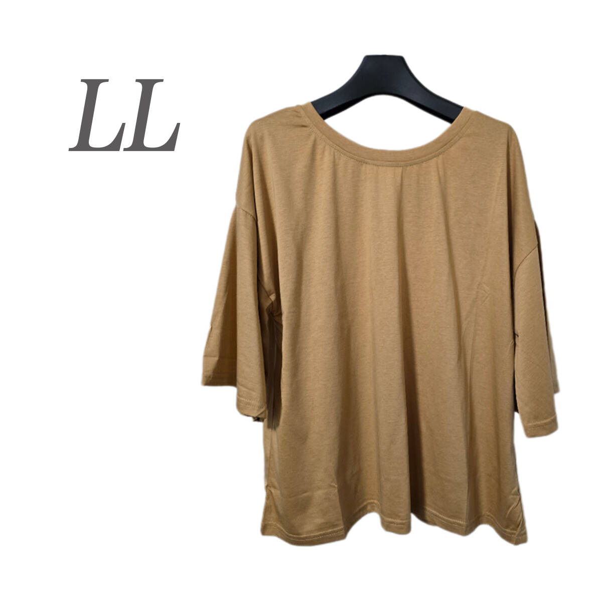 - ●新品/無地/トップス/カットソー/LL/キャメル/ベルト/レディース●x0035