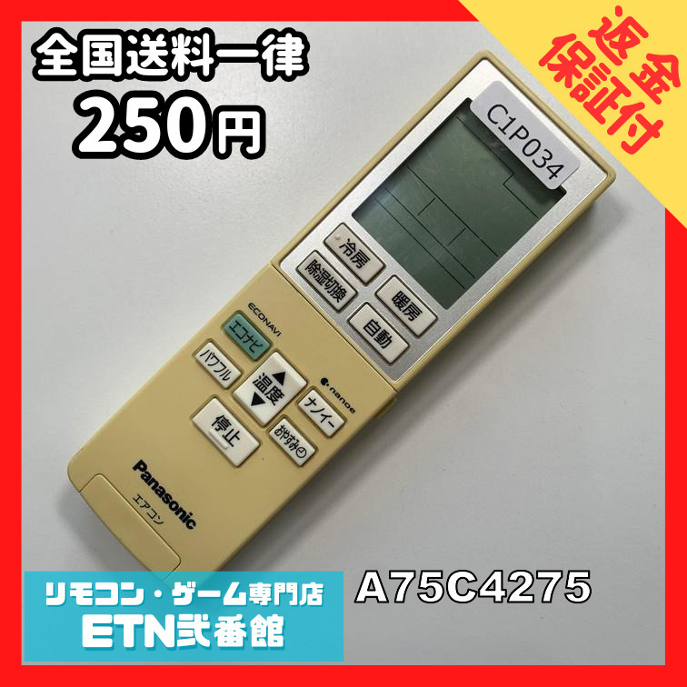 C1P034 【送料250円】エアコン リモコン / Panasonic パナソニック A75C4275 動作確認済み★即発送★ * 冷房 暖房拍卖