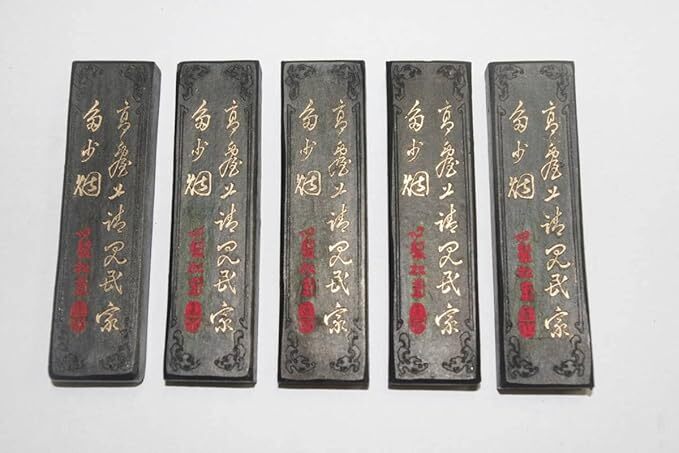 - 墨 固型墨 細焚胡麻油煙墨 枯墨 1.5丁型「胡麻油煙 松菊」5丁セット 書道用墨 美術品 固形墨 古墨 工芸品