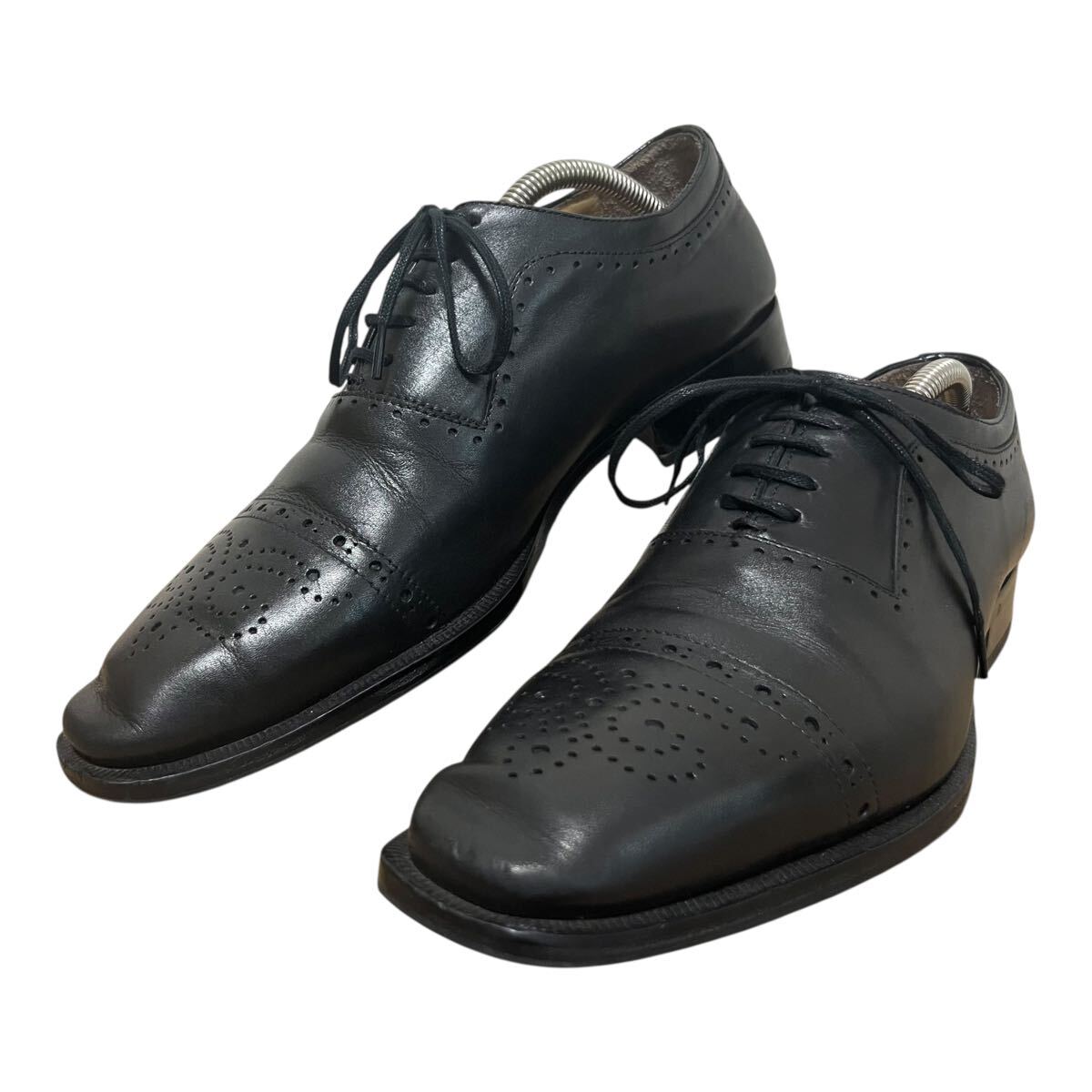 > ※YM1 WALL+WATER レザーシューズ ブラック 内羽根 ストレートチップ ブラック セミブローグ ビジネス イタリア製 表記8.5 27cm相当