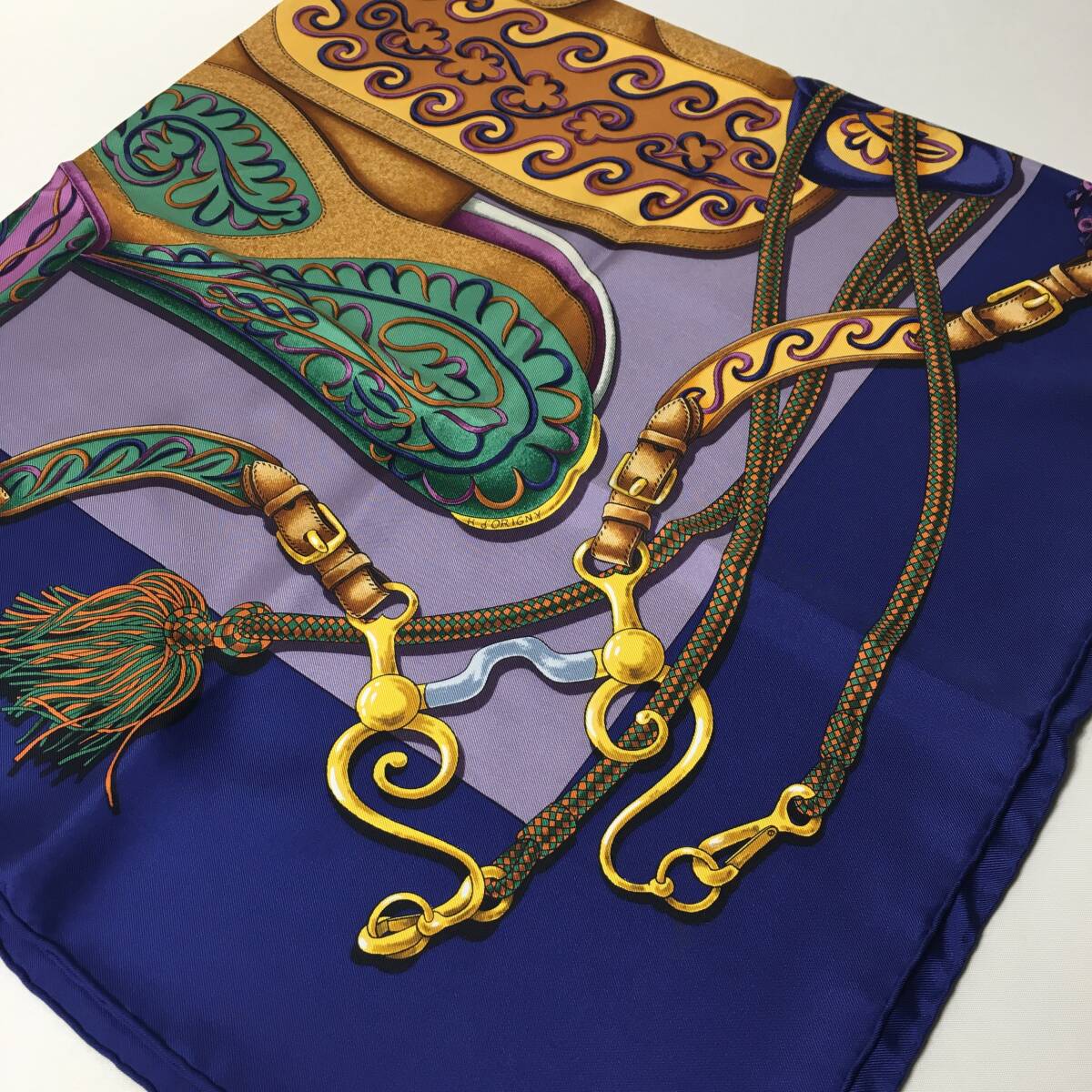 - 76B96|美品|エルメス カレ 90 スカーフ シルク ネイビー