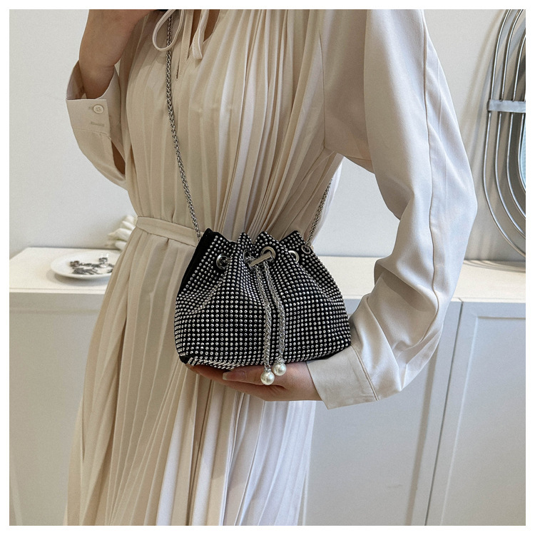 - 人気推薦キラキラ 巾着バッグ チェーンミニバッグ ワンサイズ シルバーお色選択可
