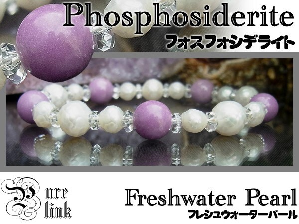 - 紫&白『フォスフォシデライト&淡水パール』五芒星ブレスレット