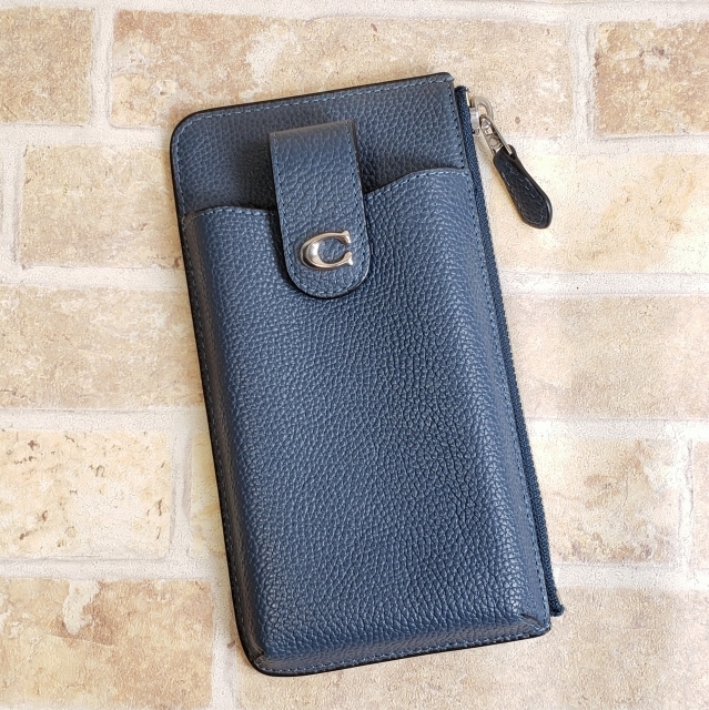 - 美品 コーチ COACH エッセンシャル フォーンウォレット レザー 財布 ブルー