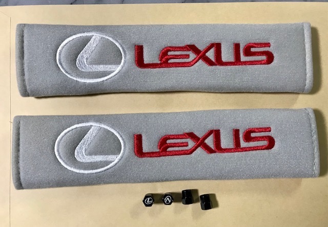 - セット割引!新色グレー レクサスロゴシートベルトパッド&タイヤバルブキャップセット LC500 LS500 LX570 IS300 ES300 NX200