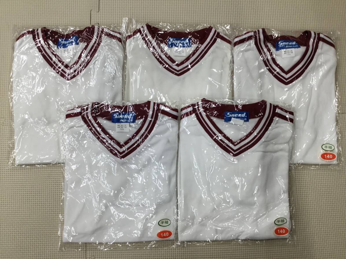 - S1252 新品【Sneed Sanwa】スクール スポーツウェア サイズ 140 5枚/V衿/白x赤/半袖/男女兼用/男女小学生/男女児童/体操着/運動着