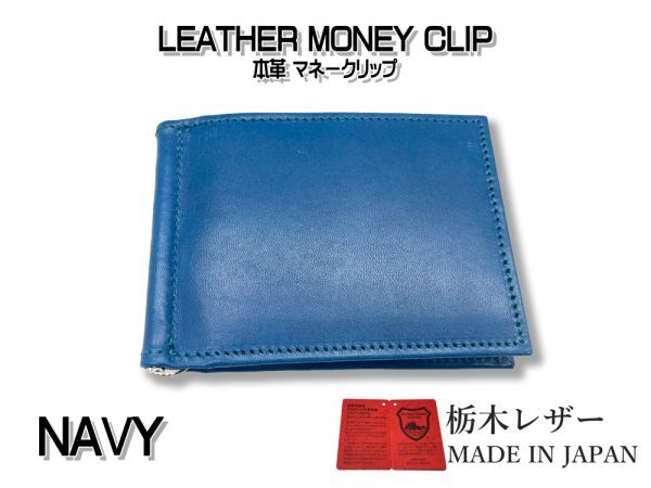 - 新品 本革 栃木レザー マネークリップ カード入れ 財布 コンパクト ウォレット ハンドメイド 日本製 国産 紺色 ネイビー one063-NAVY