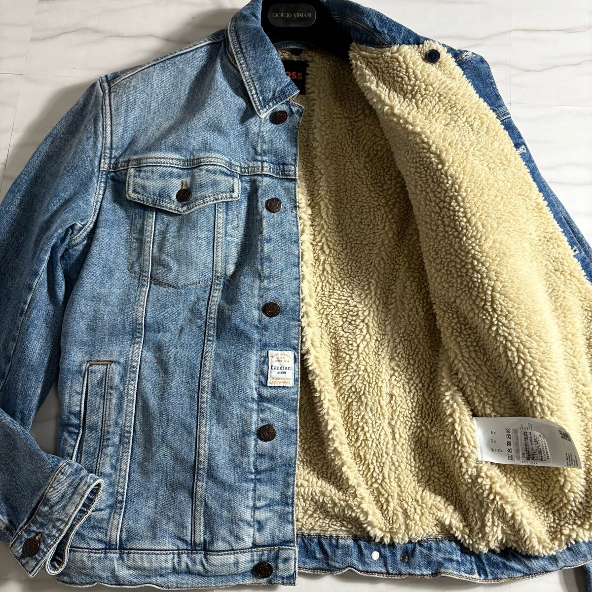 > 極美品/現行タグ◎ヒューゴボス デニムジャケット 裏ボア Fムートン ジージャン 銀ボタン アウター 最上位モデル HUGO BOSS メンズ 青 M