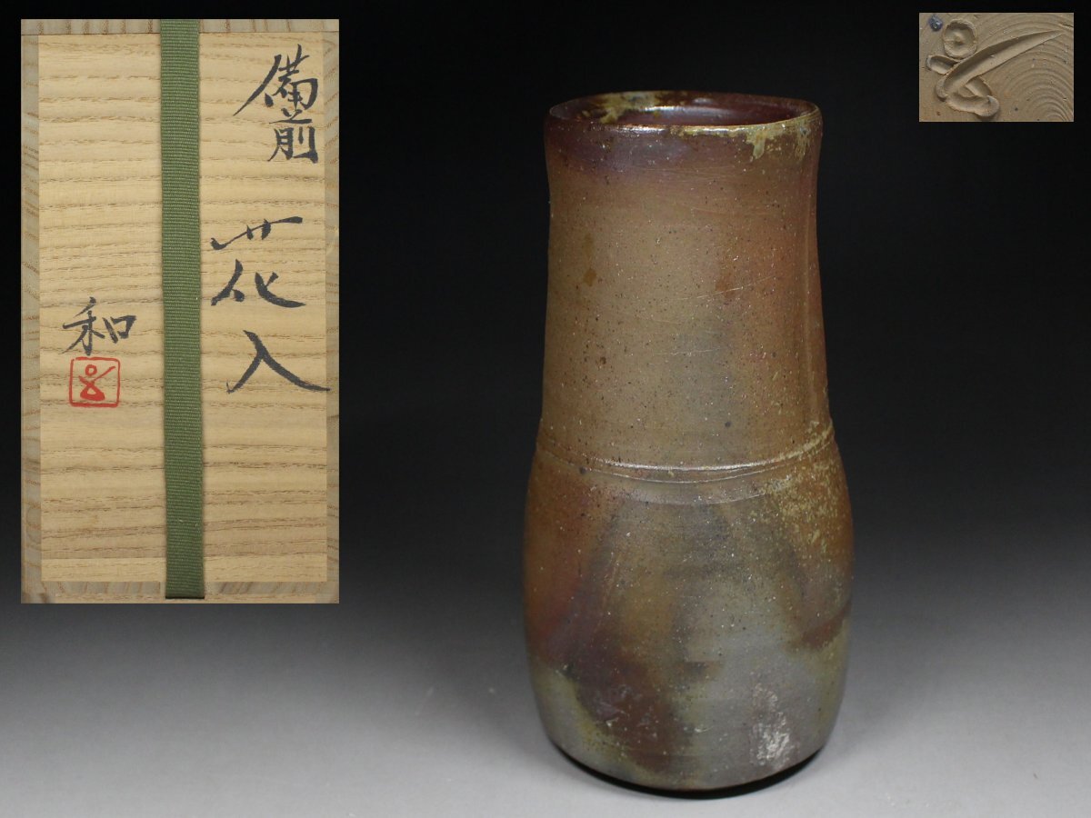 - ◆備前・藤原和・花入・花瓶・花器・栞・共布・共箱・検 藤原啓◆a7184h