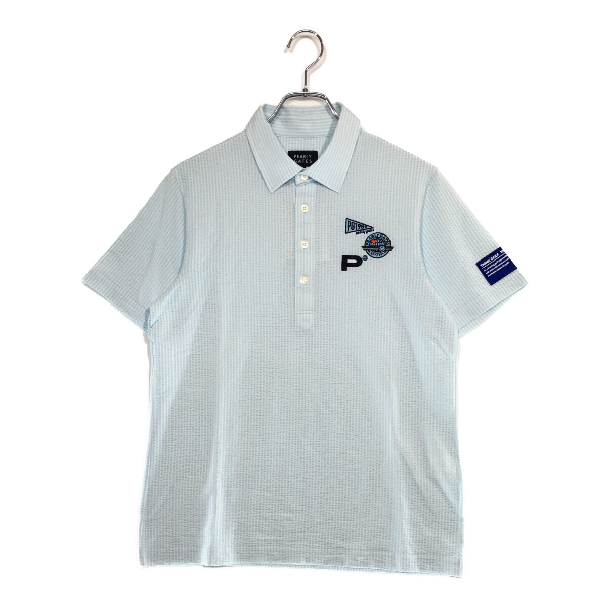 - coco 未使用品【値下げ】 パーリーゲイツ メンズ 半袖ポロシャツ 4(M) 水色 サッカー生地 ストライプ レターパックプラス発送可 99921
