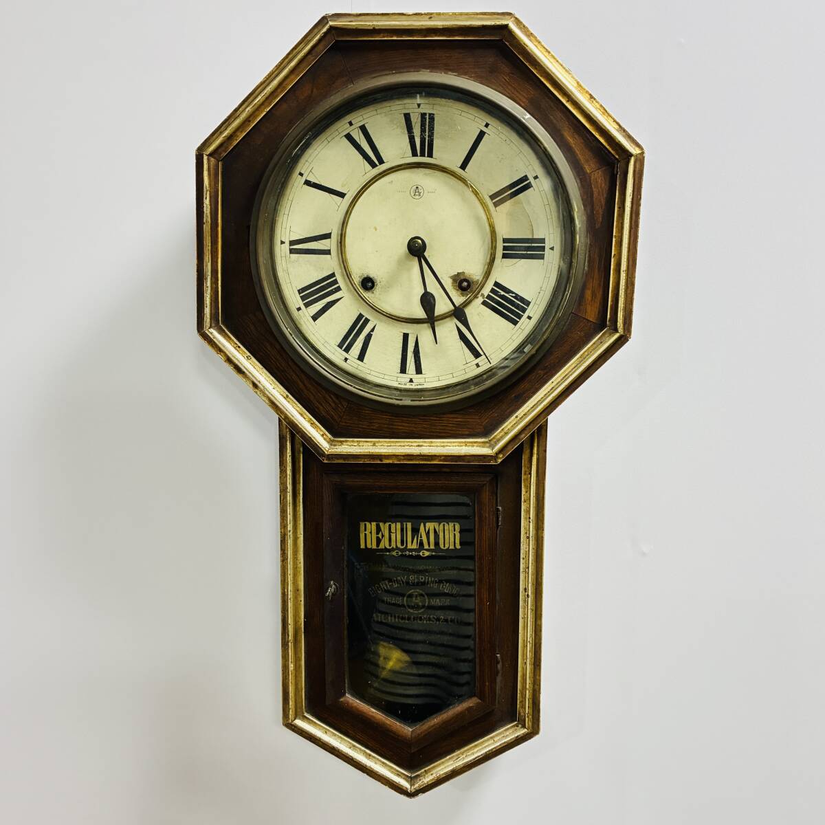 - 【63173C】掛け時計 REGULATOR 八角振り子ゼンマイ時計 アンティーク ヴィンテージ 年季物 ジャンク品 現状品 経年保管品