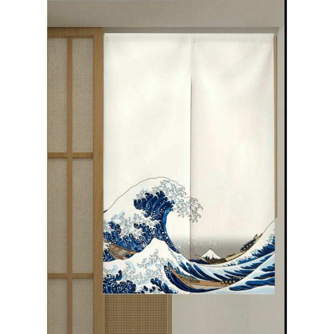- のれん 神奈川沖浪裏 白 送料無料 新品カフェカーテン 目隠し 間仕切