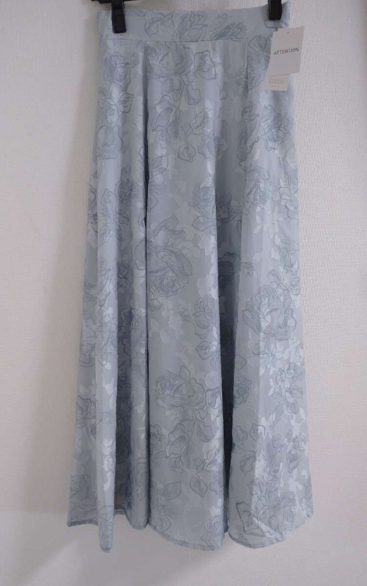 > tocco closet トッコクローゼット スカート 花柄 ラインフラワープリントフレアスカート M ブルー 水色 薔薇 ローズ 新品未使用 タグ付き